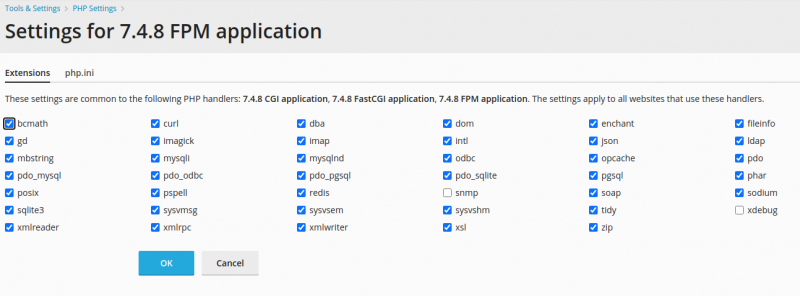 N.B.: verificare se è presente l’estensione redis in Tools & Settings > PHP Settings > *any PHP 7.4 handler* (tutte le voci di php 7.4). In caso contrario installarlo con la seguente procedura.